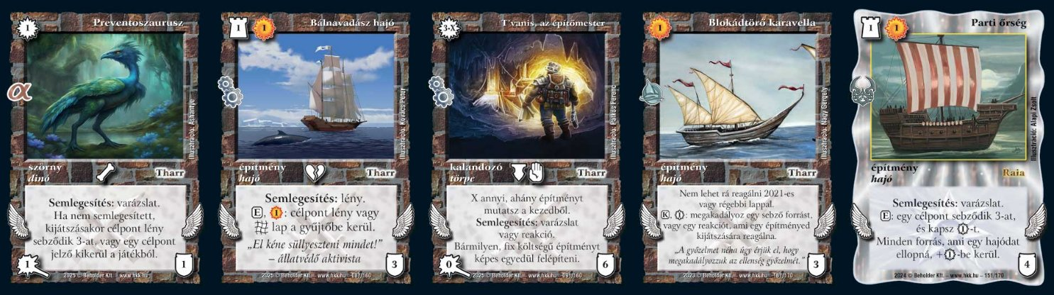 - T’vanis, az építőmester: akár 0-ért is érkezhet varázslatcounter vagy reakciót fog, egyedül képes felépíteni bármilyen építményt