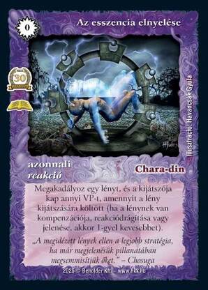 Az esszencia elnyelése: Hiába nem védekezik és nem ősmágiás, manapság meg kell becsülni a 0-s reakciókat, még akkor is, ha nem lapot, “csak” lényt akadályoz meg és visszakapja az ellenfél a manát rá.