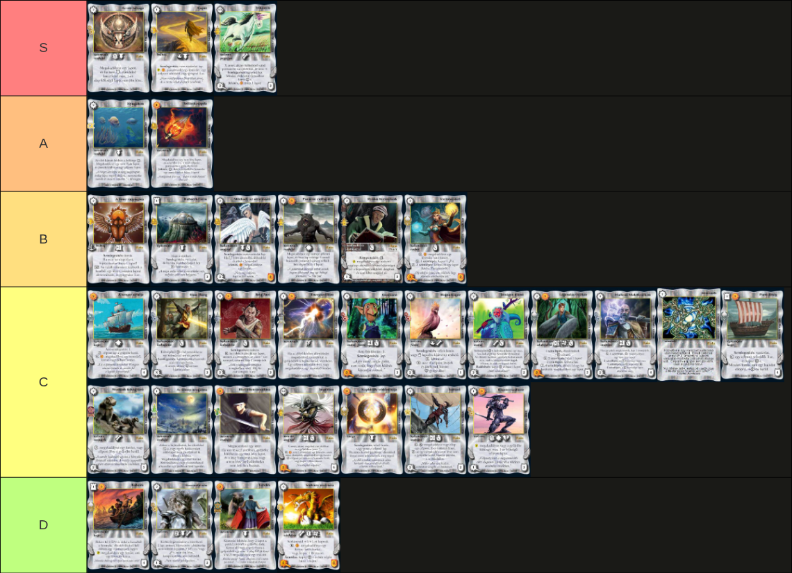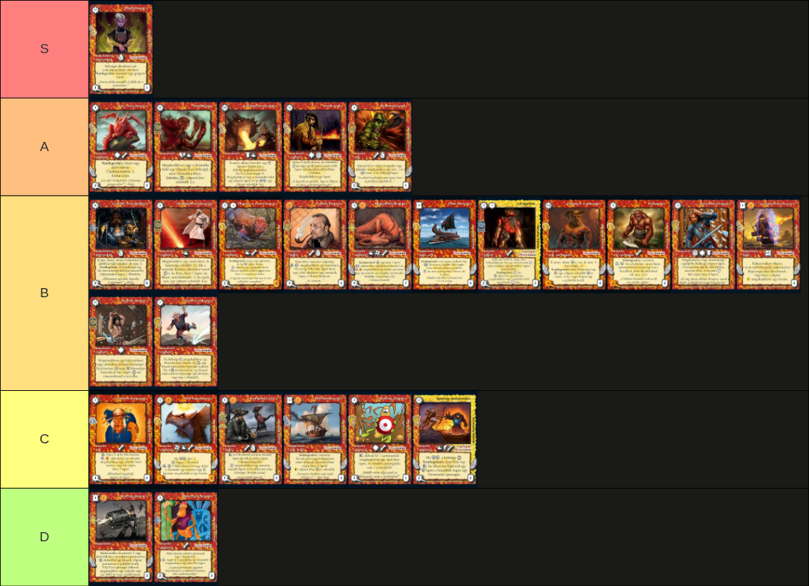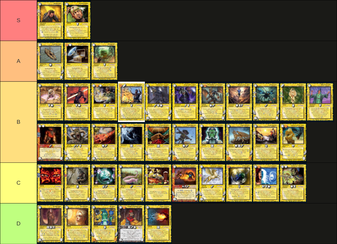 | Tier C | Korlátozott formátumon (pl hatalom korlátozása) vagy legfeljebb baráti játékban még előkerülhetnek |